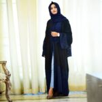 Classic black abaya with navy blue detailing