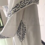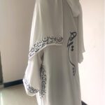 What sets this abaya apart is the exquisite Arabic calligraphy embroidery adorning the pockets, sleeves, and back. These delicate and intricate designs add a touch of traditional charm and make a statement of cultural heritage. Each stitch is a work of art, creating a visual masterpiece that is sure to captivate.